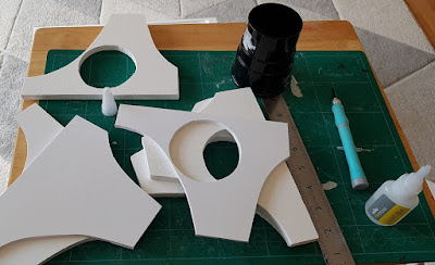 Once I had the basic templates marked up, I stencilled out the corrected number of each part onto 10mm Foamex then set about cutting the components with my trusty (now sadly deceased) jigsaw.