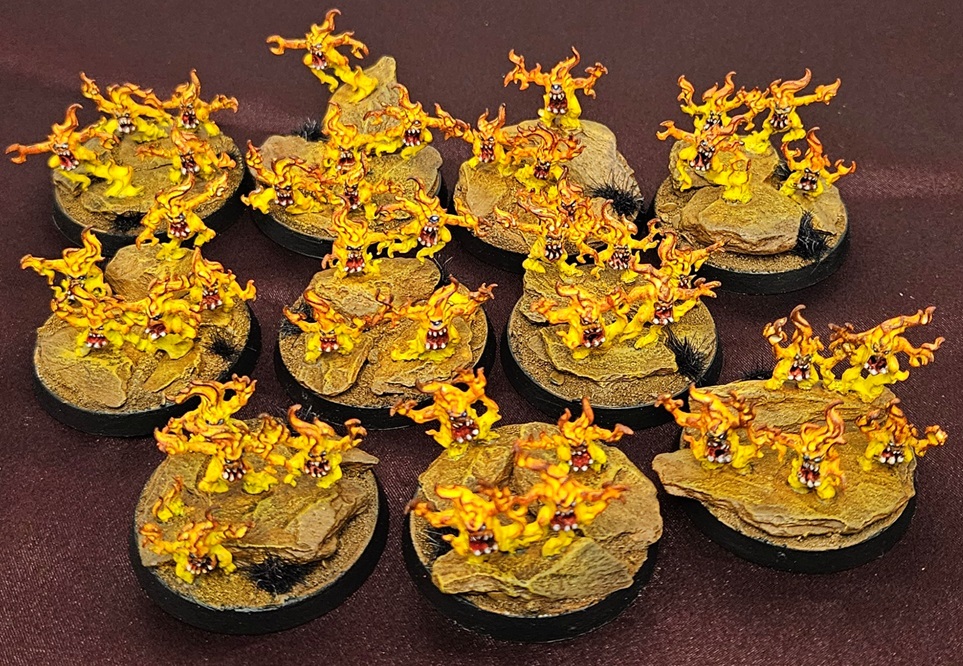 I wanted the army to represent a burning elemental avalanche rather than a coherent army