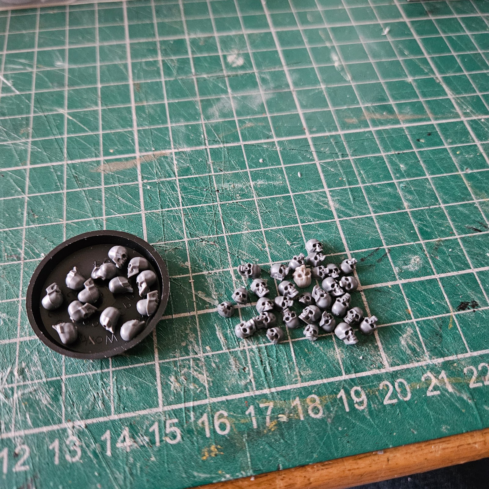 I worked out the dimensions of each pillar top; two would be 10 X 10 cm and one being 15 X 15 cm to accommodate the considerably larger Daemon Primarch miniature.