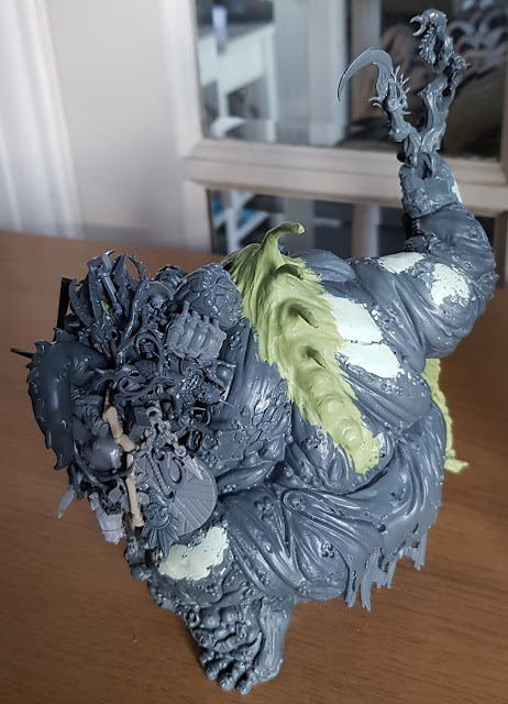 As previously mentioned, The Troggoth Hag started off as a Great Unclean one plastic kit. I assembled the basic shape then carved off any large details like the spilling guts and toothed maws which would indicate this was a creature of the dark gods. I roughly filled all of the gaps this left with some basic epoxy putty.